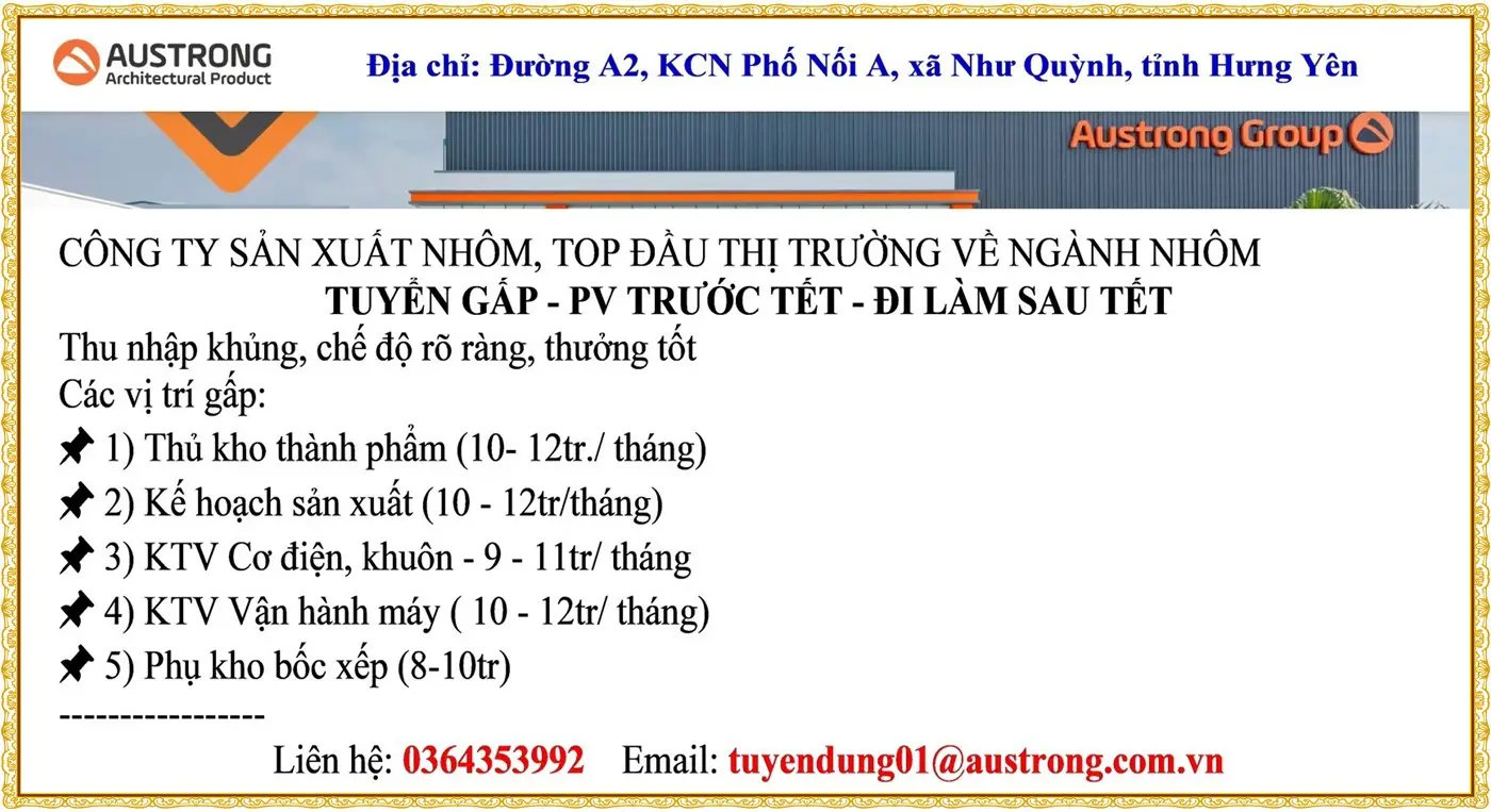 👉 Phỏng vấn sớm – giữ chỗ chắc chắn – nhận việc ngay sau Tết