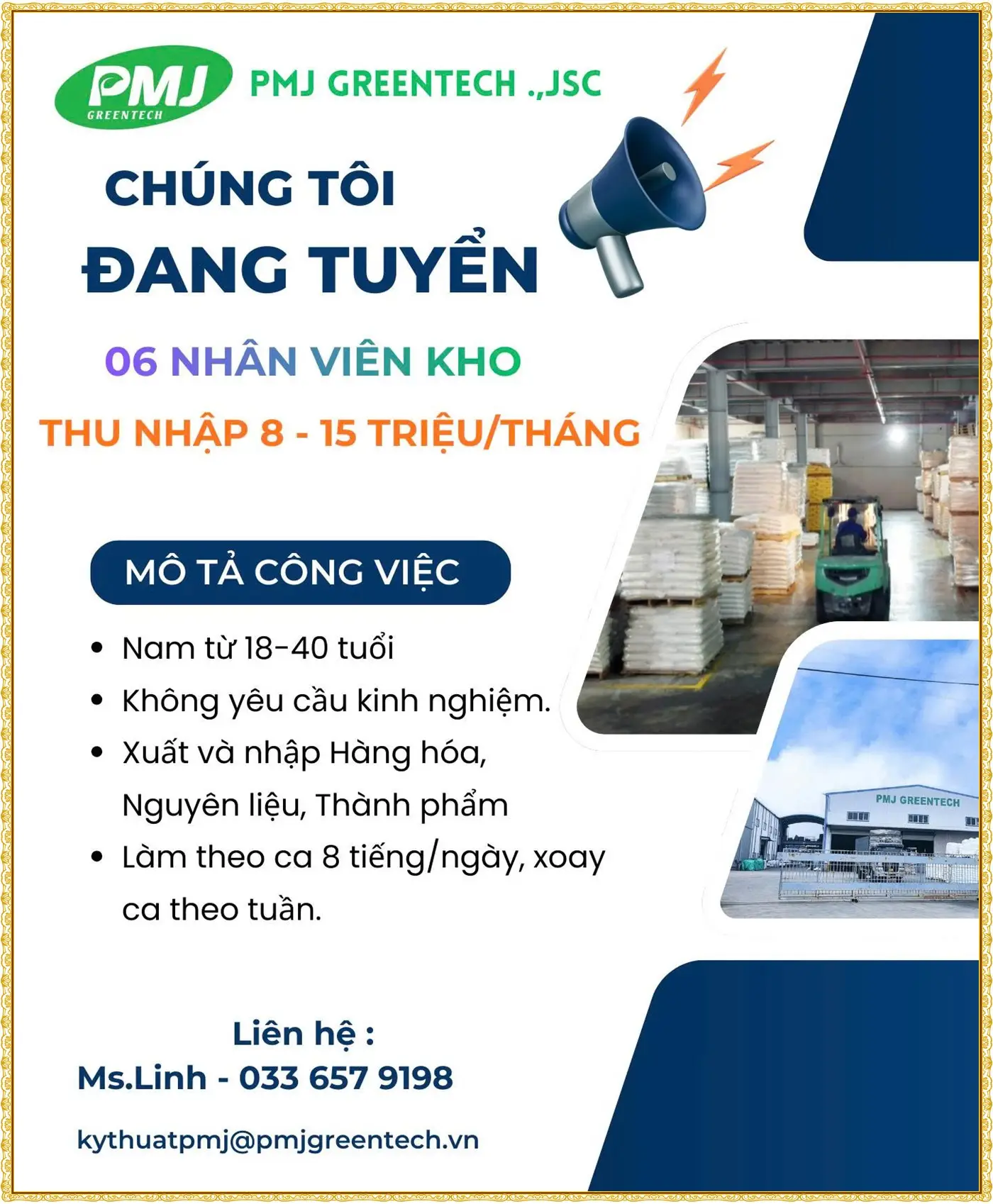✅ NV THỦ KHO ĐI HC 10 - 12 TRIỆU