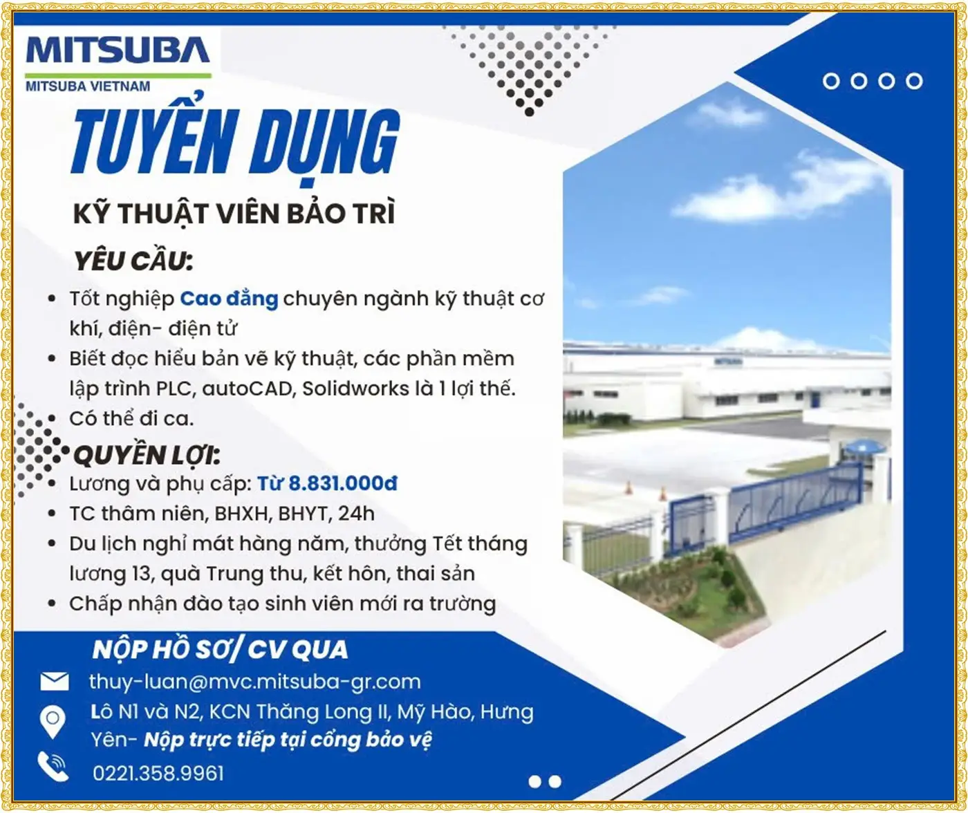 📞 Liên hệ ứng tuyển: Zalo / Điện thoại: 0963078857 - 0394917358 - 0973929021