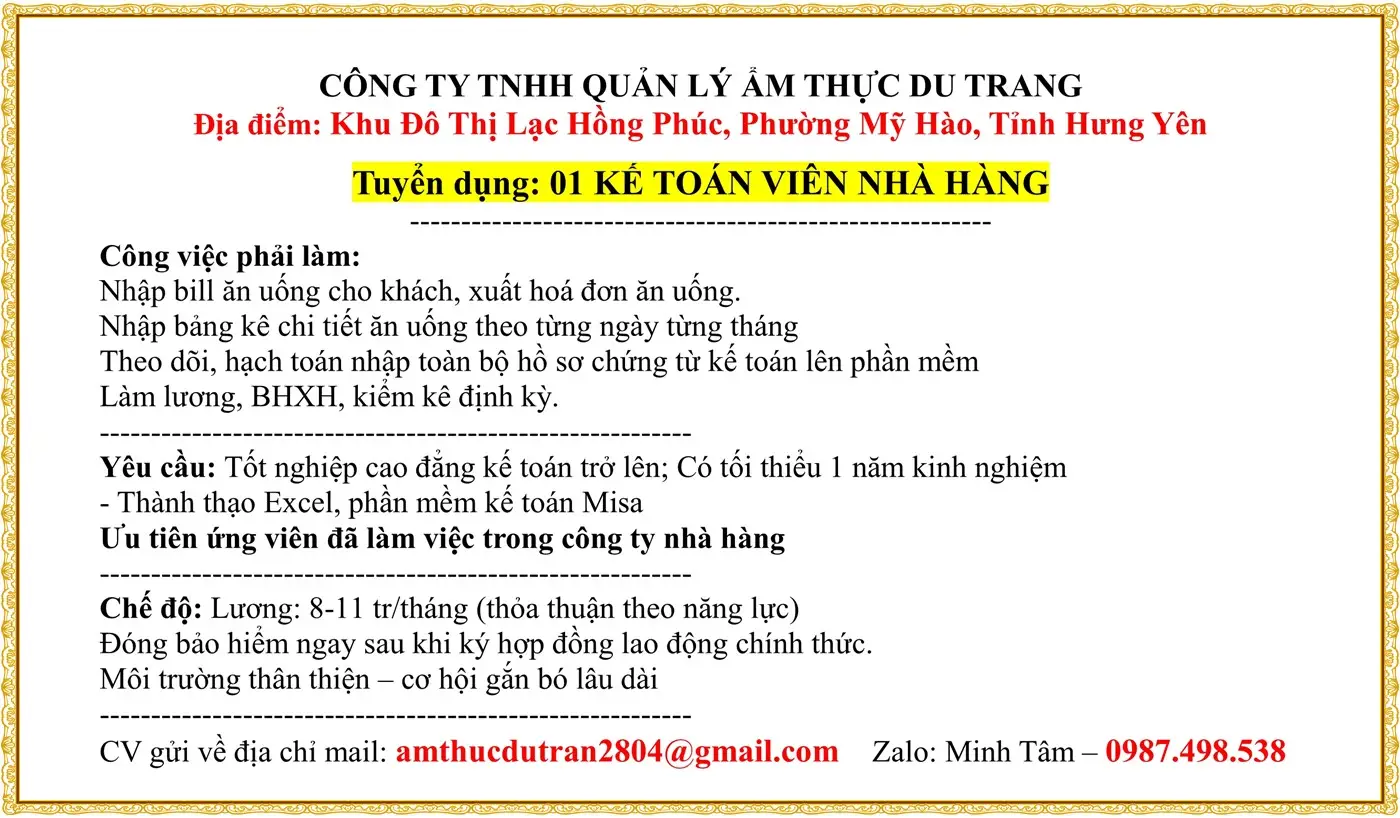 ✨ Việc ổn định – chế độ đầy đủ 📞 0375 630 994 ( có zalo)