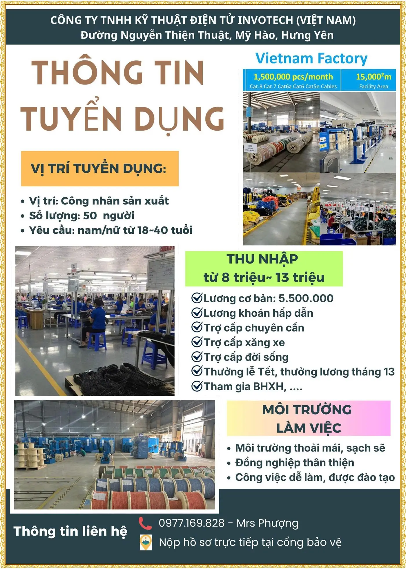 📍 Làm việc: KCN Sạch – Ân Thi – Hưng Yên