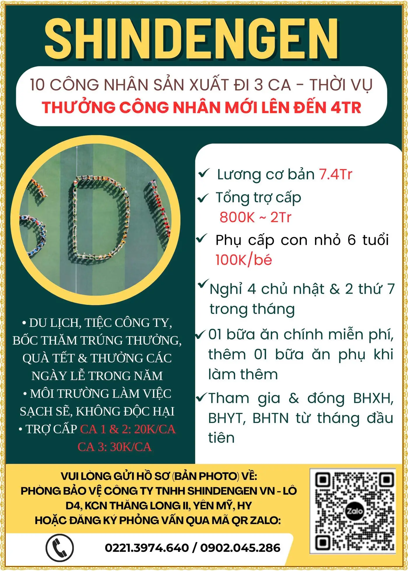 📍 ĐỊA ĐIỂM LÀM VIỆC: KCN Sạch Ân Thi – Hưng Yên