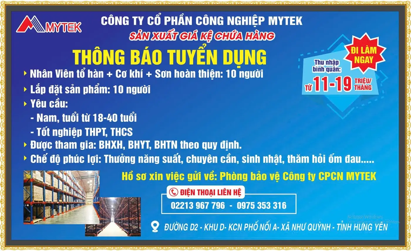 ✅ NV THỦ KHO ĐI HC 10 - 12 TRIỆU