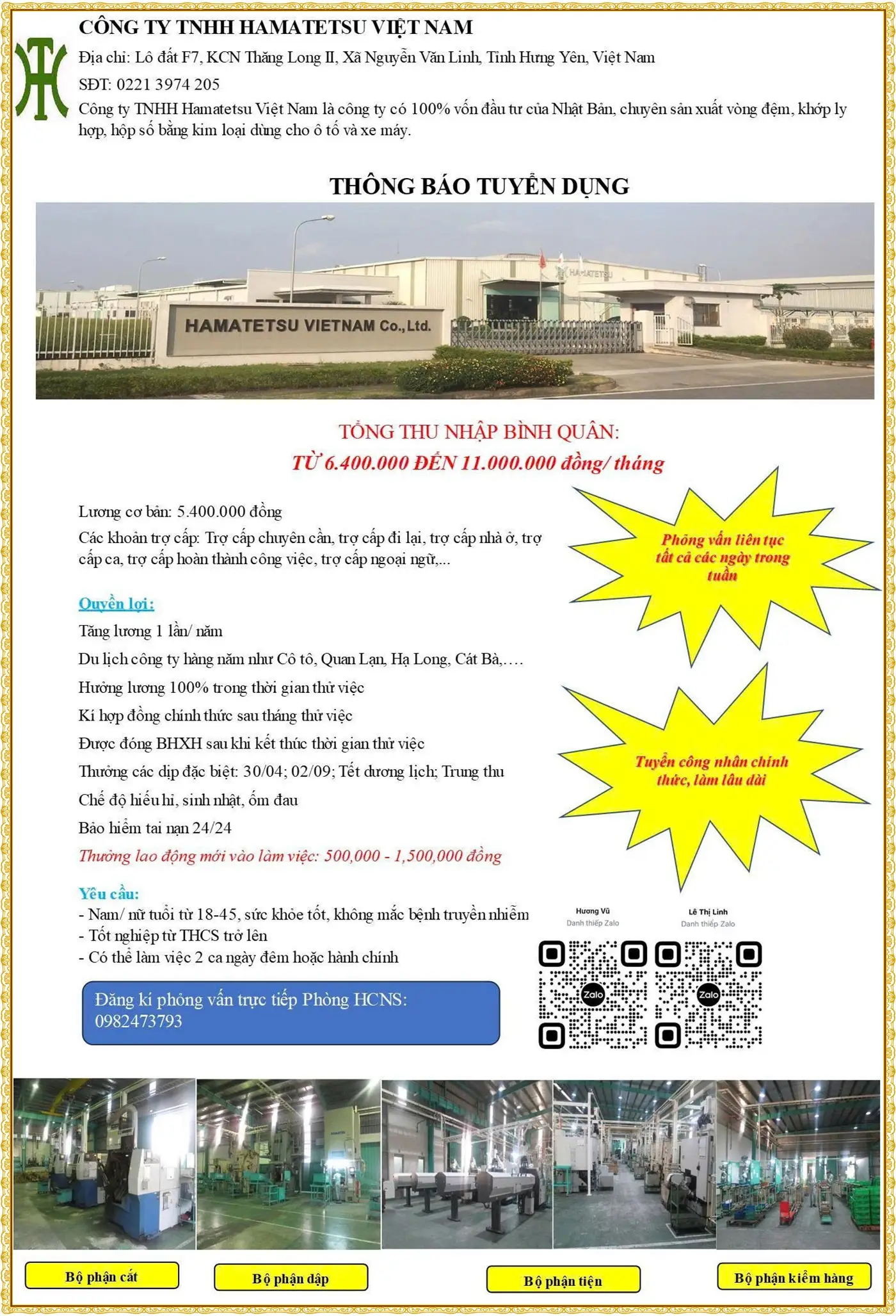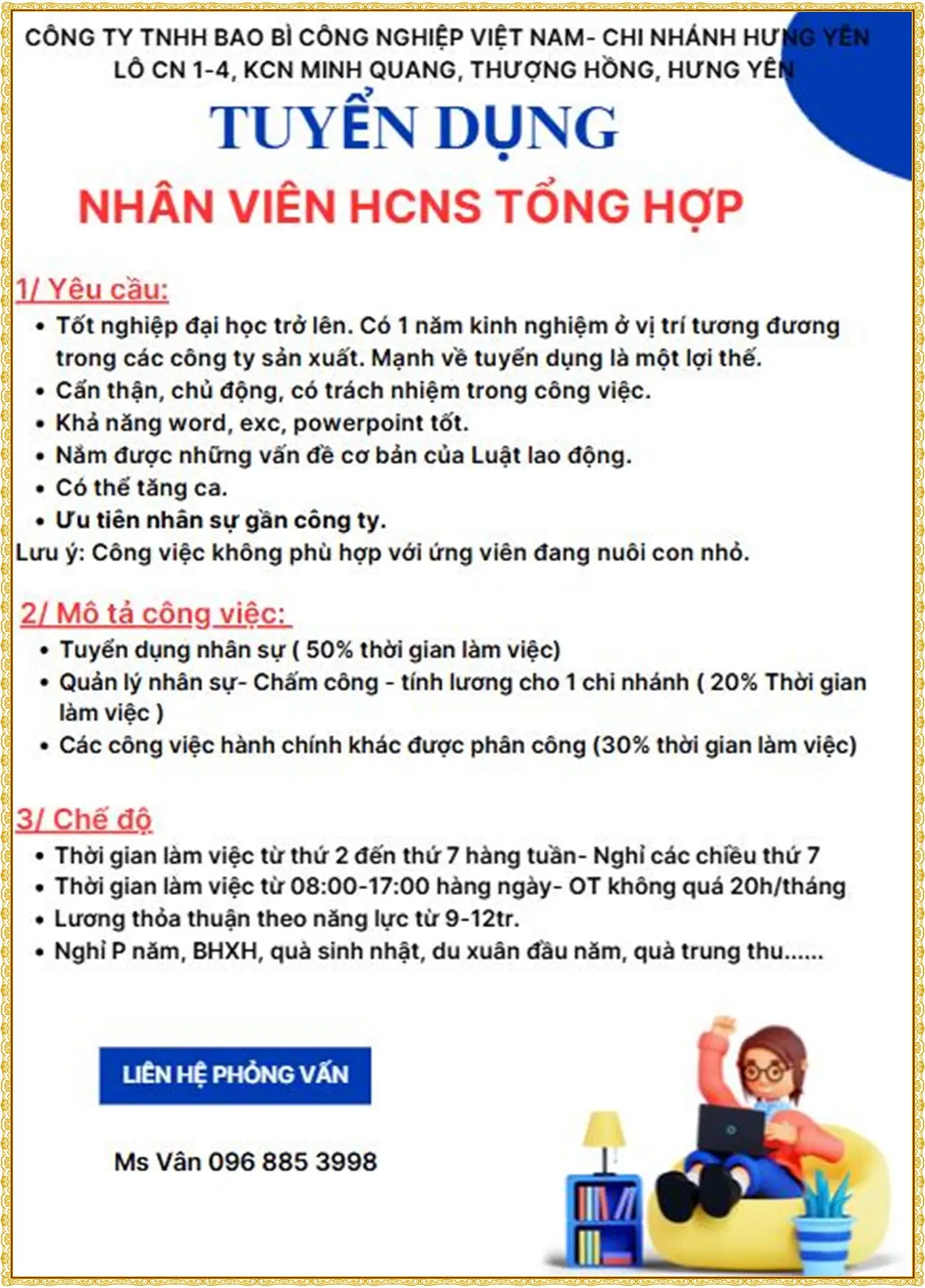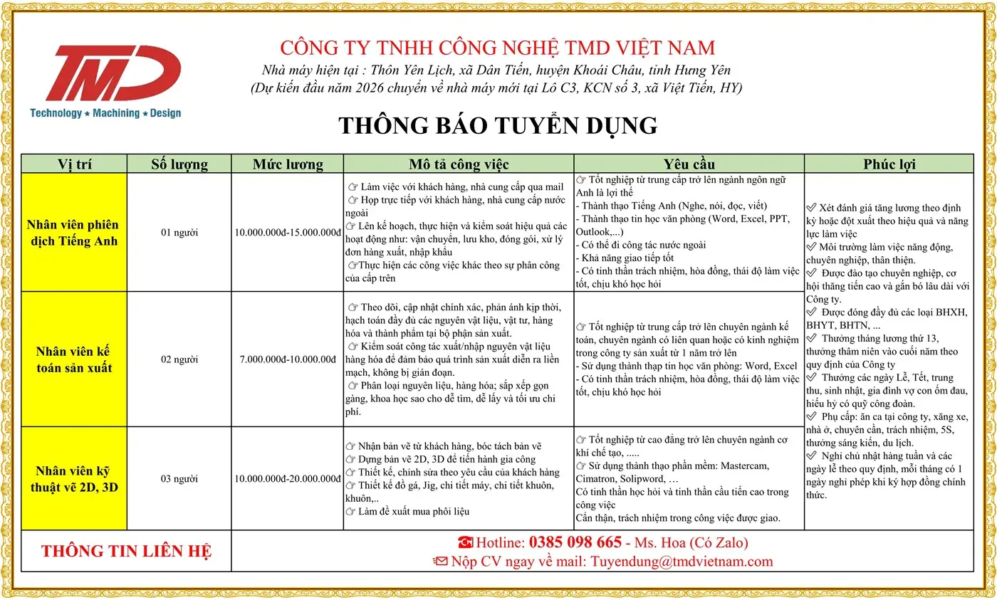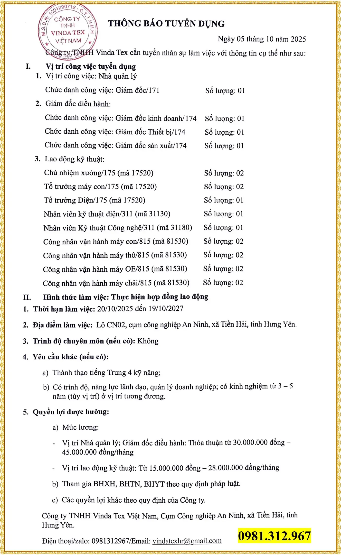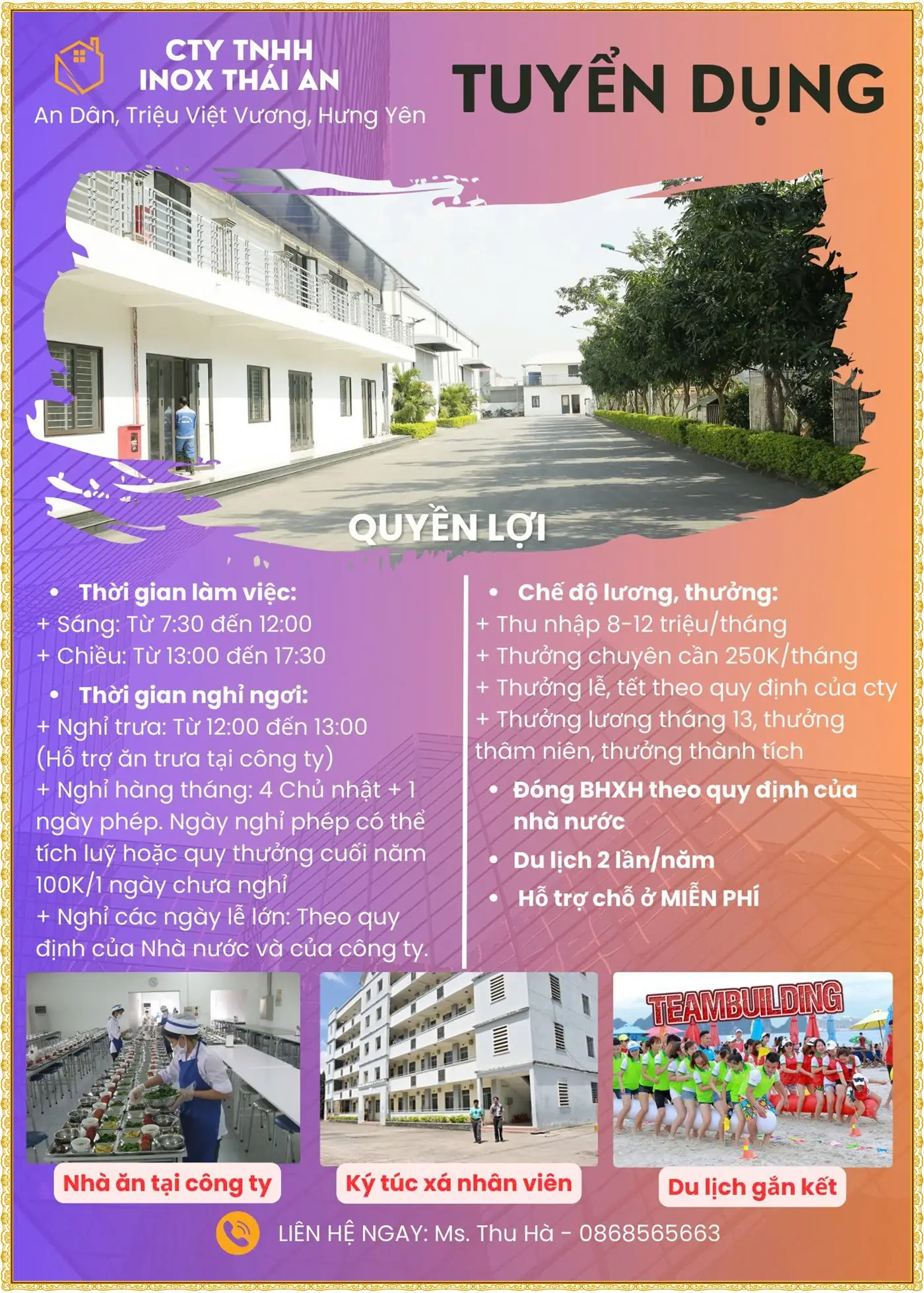 Vieclamhungyen.vn cập nhật vị trí tại các khu công nghiệp và doanh nghiệp địa phương; tin đăng kiểm duyệt và liên hệ trực tiếp.