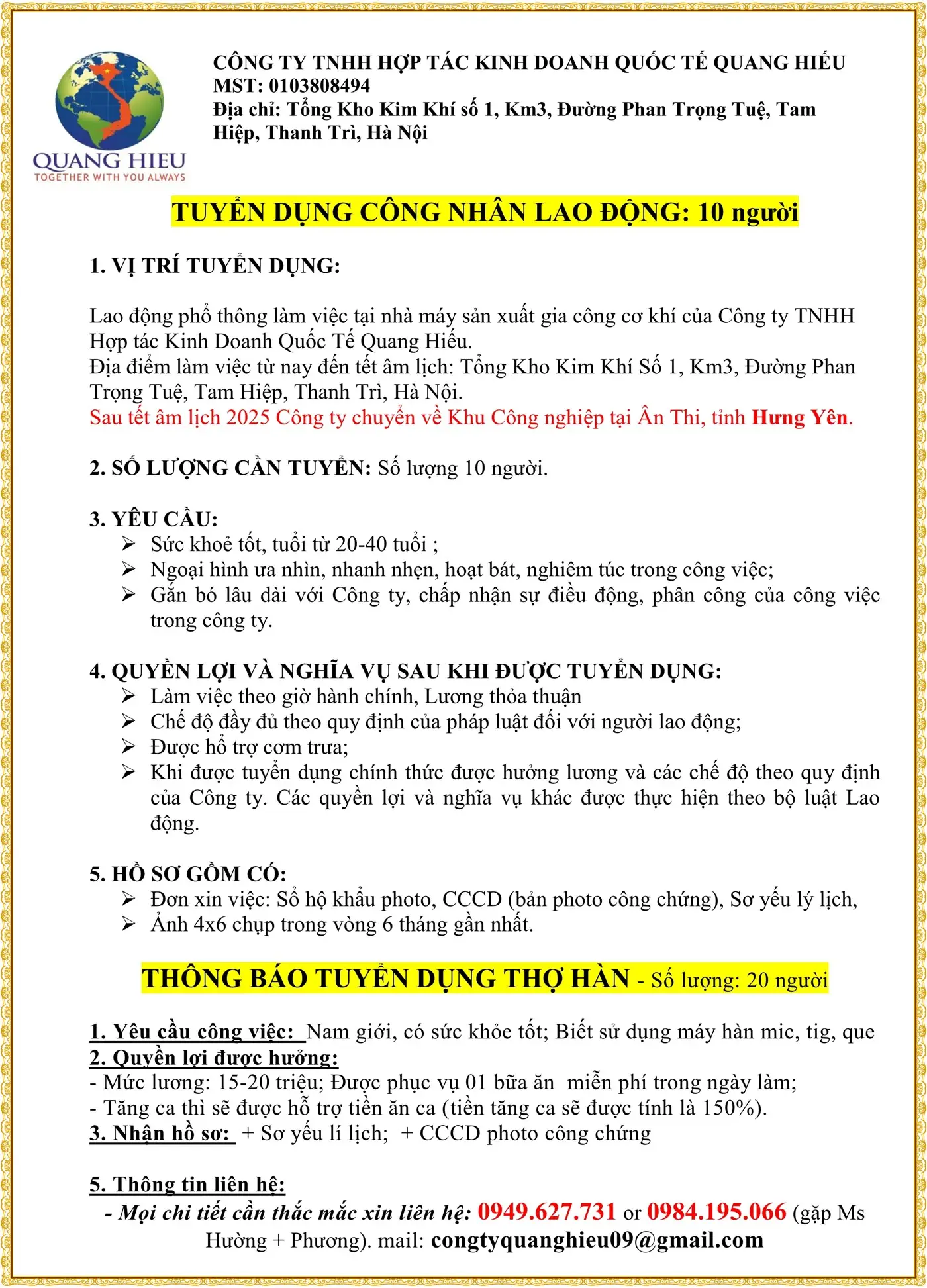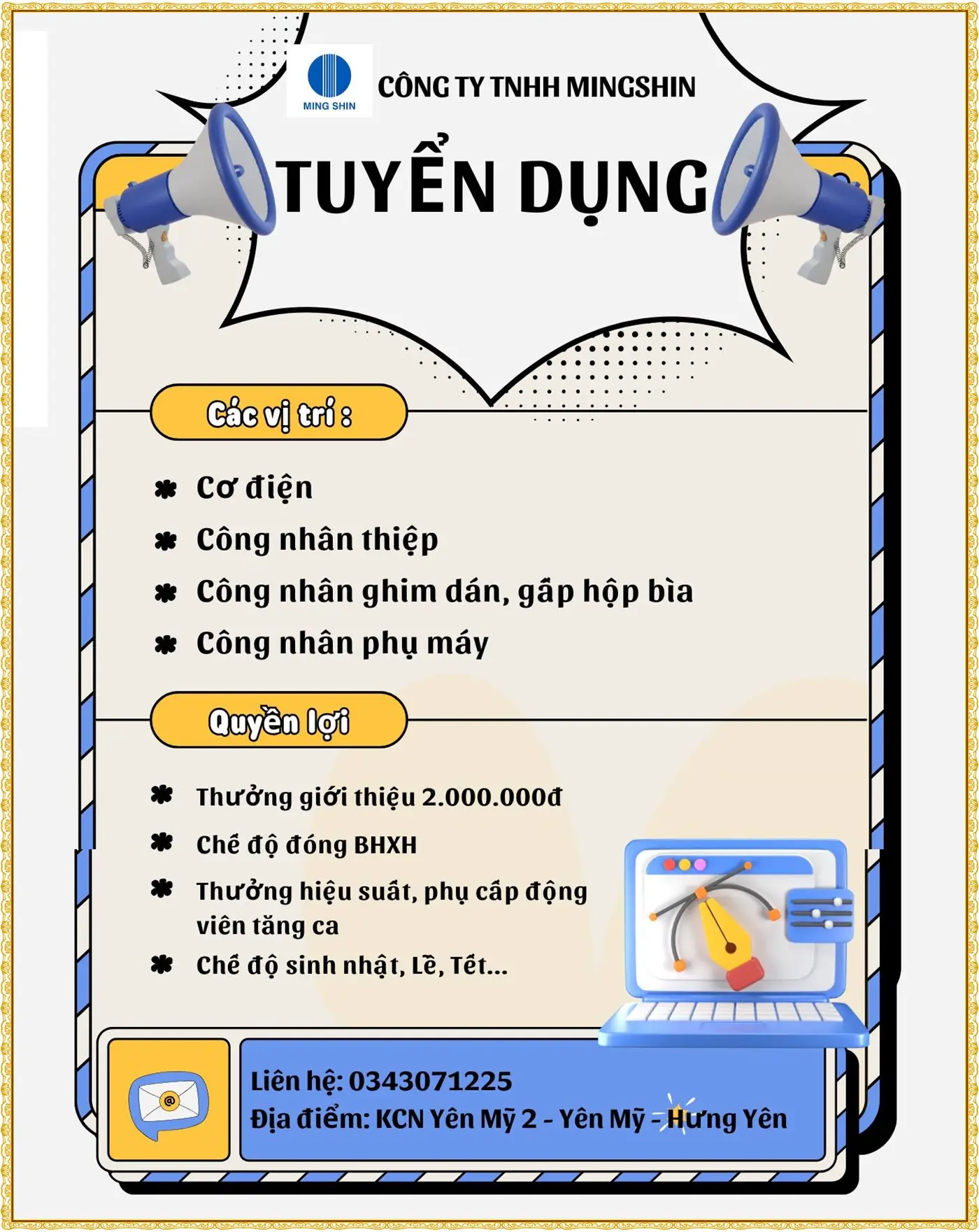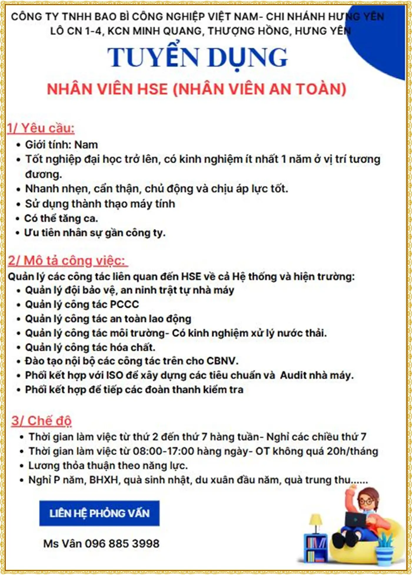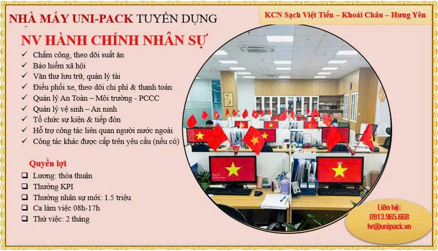 Vieclamhungyen.vn cập nhật vị trí tại các khu công nghiệp và doanh nghiệp địa phương; tin đăng kiểm duyệt và liên hệ trực tiếp.